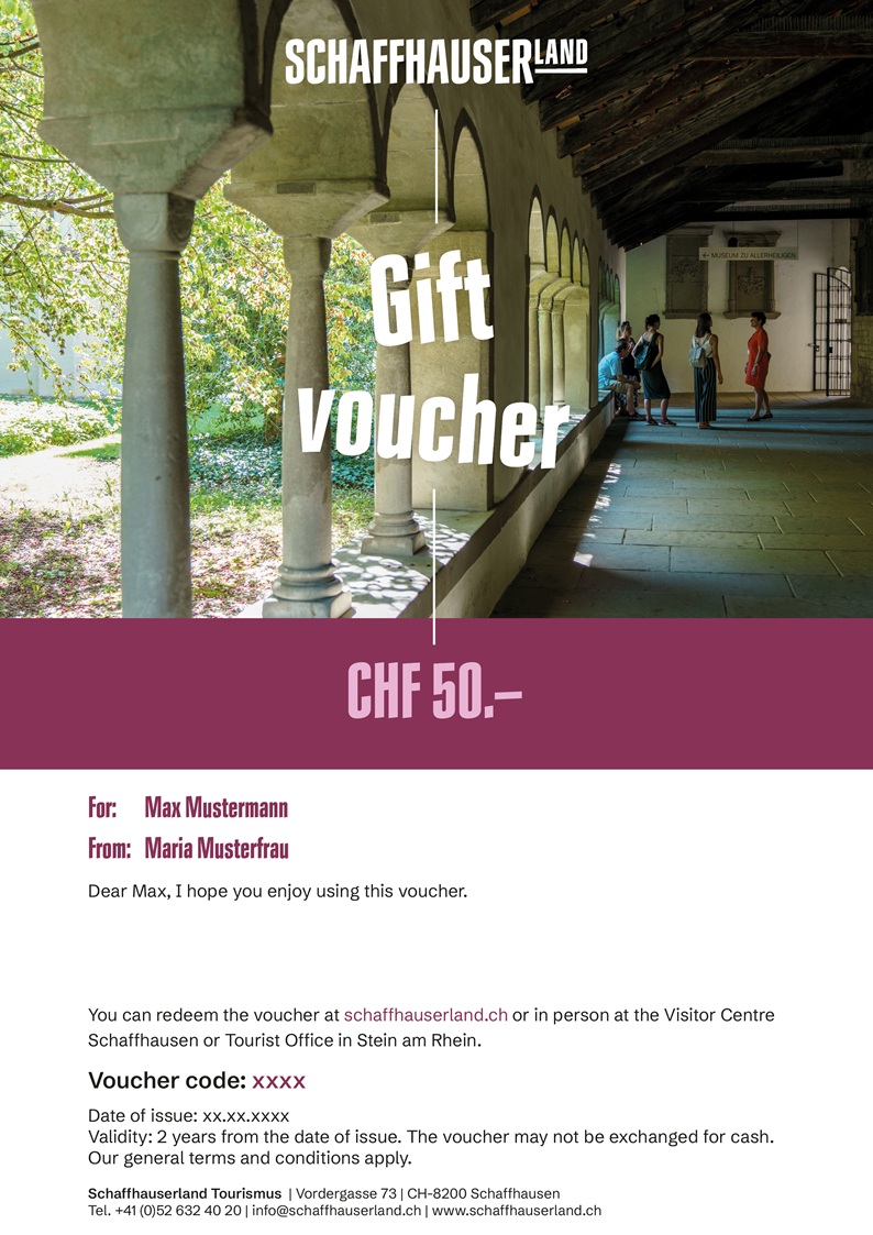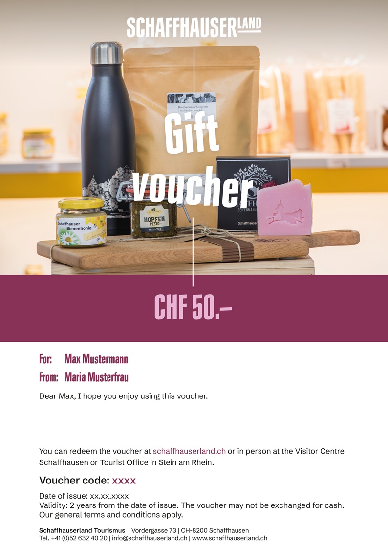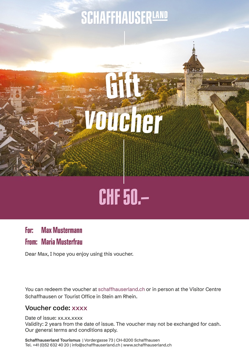 Give the gift of unforgettable experiences and lasting memories with a voucher from Schaffhauserland Tourismus!