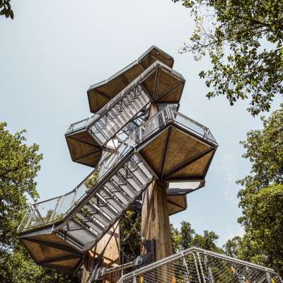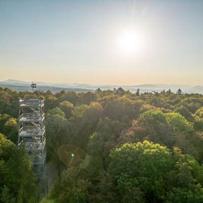 At 40 meters, the Hagenturm in Merishausen is the highest of the four «Randentürme» (viewing towers). The viewing platform can be reached via 225 steps. There are various barbecue areas near the tower for a break on a beautiful day's hiking.