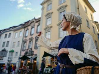 "Oh du verbrännti Zaine!" An amusing yet educational journey back to the 16th century awaits you. The merchant woman Brunhilde von Wunderstätten takes you on an exciting tour through Schaffhausen's medieval old town during this themed guided walk.