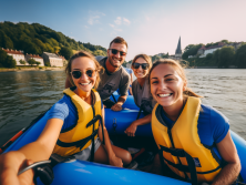 Paddle away from it all. An unforgettable natural experience awaits you on the Rhine: shimmering green and blue water, picturesque natural landscapes, and historic towns along the banks. Whether you prefer to drift leisurely or actively use the current, canoeing on the Rhine offers both adventure and relaxation.