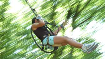 The «Panorama Express»: The more than 400-meter-long zipline with a stunning view of the Rhine Falls. It has become one of THE highlights of the park.