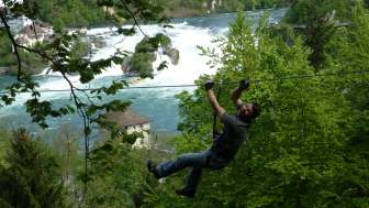 The "Panorama Parcours": This course is a little easier and also suitable for younger children and less sporty guests - it is a great, simpler alternative with lots of zip lines and an equally magnificent view of the Rhine Falls.
