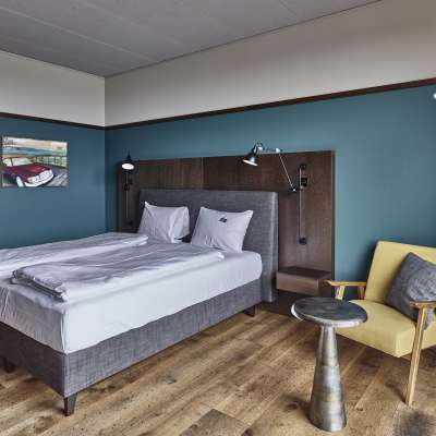 This includes an overnight stay in a cozy, wood-furnished room and a comprehensive breakfast. The overall concept of the Autohalle includes 20 modern, air-conditioned double rooms. Not only car enthusiasts will find accommodation here; business travelers and families are also warmly welcome.