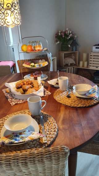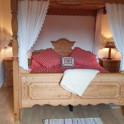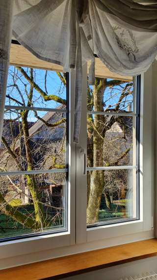 The small but nice guest apartment on the second floor has a four-poster bed, living room, small kitchen, bathroom and washing machine. Situated on the sunny side of the southern foot of the Randen, it is an ideal starting point for hikes on the Randen and through the vineyards, for wine tastings in the village's own trotte, for cycling, biking, motorcycle tours, discovering the Rhine Falls and for boat trips on the Rhine.