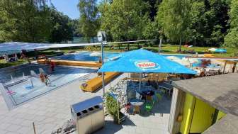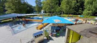 River pool on the Rhine in a quiet location in the forest with additional swimming and paddling pools.