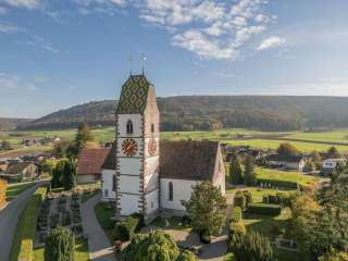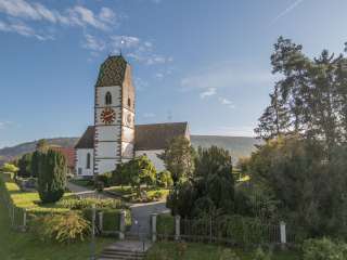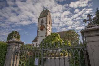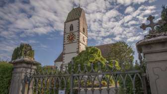 The nave and choir walls feature various epitaphs from the Baroque period. Frescoes adorn the choir. In the tower, which was built in 1484, Switzerland's second oldest bell rings in the holiday August 5:00 a.m. on August 1 every year.