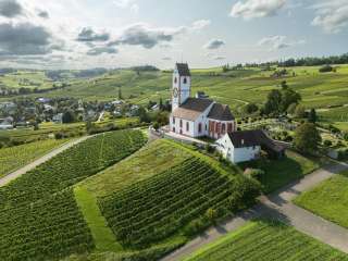 Built in 1491 and dedicated to Saint Mauritius, church is located on a promontory of the Hallauer Berg mountain and towers over the village of Hallau, which is famous for its winegrowing. Its elevated position means that the church is visible throughout the Klettgau region and has become a landmark of Hallau.