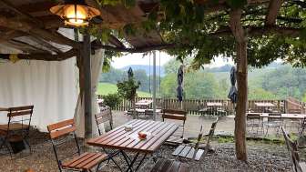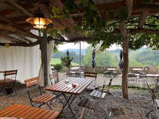 In a cozy atmosphere, you can visit our Besenbeiz (seasonal tavern) from early April to late October, Friday to Sunday. In very bad weather (storm, heavy rain…), the Besenbeiz remains closed. If you are unsure, simply give us a quick call at 044 867 15 59. At the Besenbeiz, you can enjoy farm-produced and regional food and drinks. That's what a Besenbeiz is all about. On our farm, we produce wine, grape spritzer, sweet cider, and meat (beef). All other products are produced in the immediate vicinity. From the grill, we serve you our meat. The specialty of our farm is the beef sausage. For dessert, there are delicious cakes and tarts, as well as ice cream from Gelatito in Buchberg.