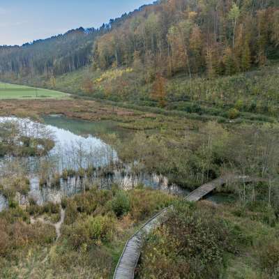 Nestled among wooded hills, the Wangental valley is a gem rich in botanical, zoological, geological, and historical treasures. A footbridge through the biotope and two observation huts allow visitors to observe the diverse flora and fauna undisturbed.