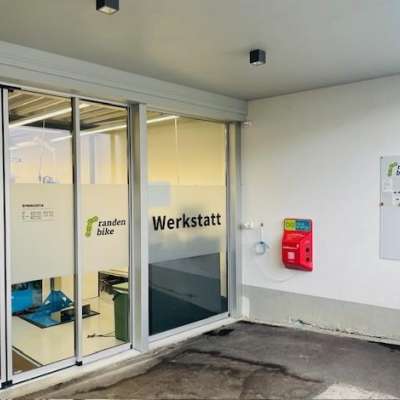 Bicycle specialist shop with a wide selection of mountain bikes, road bikes, and e-bikes, offering test rides and comprehensive service in a modern workshop.