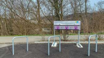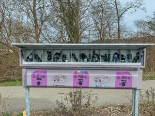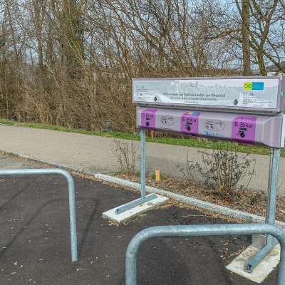 The charging stations are located in the bicycle parking area at Schloss Laufen.