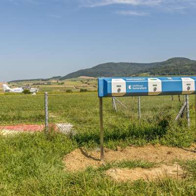 The charging station is located directly at Schmerlat Airfield. This small airfield at the edge of the forest is a meeting point for glider pilots and aviation enthusiasts – offering expansive views over the region and breathtaking take-offs.