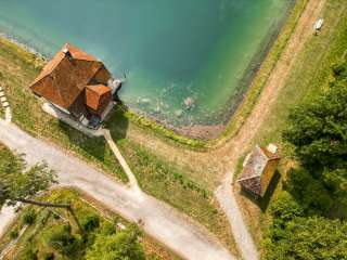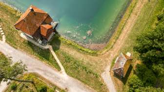 The artificial pond was Switzerland's first pumped-storage reservoir in 1907 and was practically built by hand at the time.