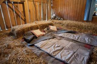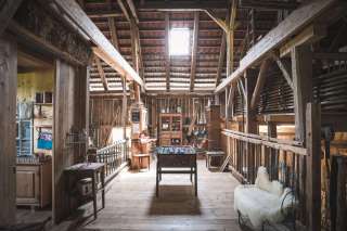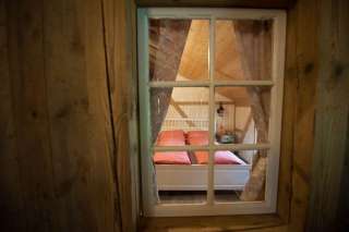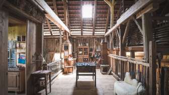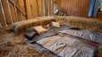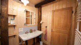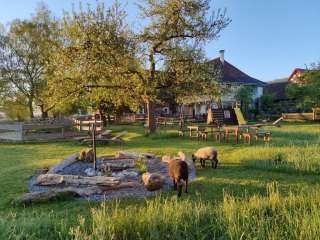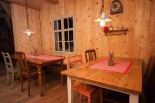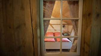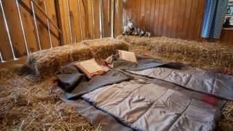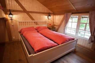 The lovingly furnished rustic barn, located directly by the stream, houses the 4-bed room and two straw rooms above the donkey stable in the hayloft. The room is heated and equipped with comfortable mattresses and a wardrobe. You can sleep in a double bed or in one or two folding beds.