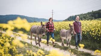 At our small donkey farm, we offer our guests a family-like atmosphere to spend time with our donkeys and small animals, creating enriching encounters in many ways.