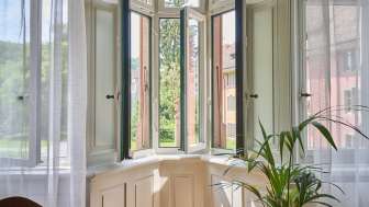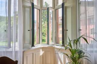 The house "Zum Hinteren Dornhahn" is located in the middle of the old town on Münsterplatz opposite the Allerheiligen monastery, the former religious, cultural, and administrative center of the city of Schaffhausen. It is one of the typical medieval town houses with a workshop or shop on the ground floor and apartments on the upper floors. The vacation apartment is located on the first floor with a view of the Mosergarten, just a few minutes' walk from the city's landmark, the Munot, and the popular river bath.