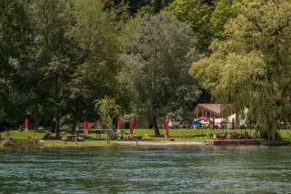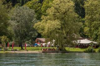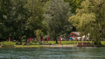 The beautifully situated river bath in the Rheinwiese leisure area offers plenty of space for swimming, relaxing, and enjoying.