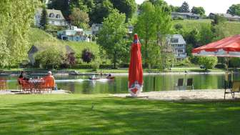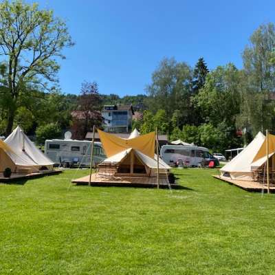 Our modern campsite in Schaffhausen invites you to stay, whether with a tent, motorhome, caravan or as a permanent camper, everyone is welcome. In the beautifully situated restaurant "RheinGenuss" you will be spoiled with culinary delights. It is also ideal for company events, banquets, brunches or business lunches. At the lido, with its large sunbathing lawn, plenty of shade and lots of opportunities to play, you can spend happy hours with your children or friends. The beautiful region around Schaffhausen, the beautiful stretch of the Rhine, the Klettgau or the Zürcher-Weinland, offers a lot of variety and excursion possibilities.