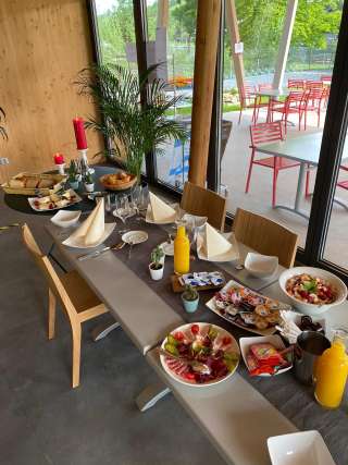 Our modern Camping Schaffhausen invites you to linger, whether with a tent, motorhome, caravan, or as a long-term camper, all are warmly welcome. In the beautifully situated restaurant "RheinGenuss", you will be spoiled with culinary delights. It is also suitable for company events, banquets, brunch, or business dinners. At the lido, with its large sunbathing lawn, plenty of shade, and many play options, you can spend joyful hours with your children or friends. The beautiful region around Schaffhausen, the picturesque Rhine section, the Klettgau, or the Zurich Wine Region, offers plenty of variety and excursion opportunities.