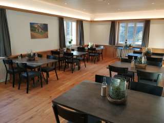 In addition to the dining room with a fireplace, the Längenbergstübli and the rustic Angusstübli are located on the ground floor. On the first floor, you will find the hall (for up to approximately 120 people) with direct access to the aperitif area and the party barn. The seminar and meeting room is also on the first floor.