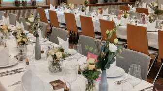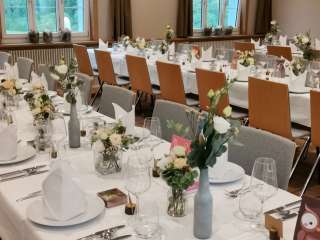 In addition to the dining room with fireplace, the Längenbergstübli and the rustic Angusstübli are located on the first floor. On the second floor you will find the hall (up to approx. 120 people) with direct access to the aperitif area and the festival barn. The seminar and meeting room is also on the first floor.