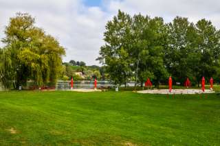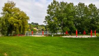 At the lido, with its large sunbathing lawn, plenty of shade and lots of opportunities to play, you can spend happy hours with your children or friends. Swimming in the Rhine is wonderful and great fun. The paddling pool and sandpit are especially fun for the little ones. There is also a lovely playground with climbing facilities. A table tennis table and a table football table are also available for an exciting match. The beach volleyball court is particularly popular with youngsters.