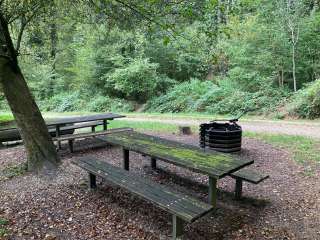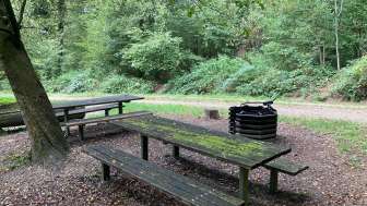 The barbecue area in front of the hut is available for use. A barbecue pit and various seating options invite you to grill and picnic. However, the Bärenhütte (Bear Hut) is not accessible.