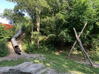 Right next to the barbecue area there is a spacious playground with a zip wire. slide, a fountain with a watercourse and various play equipment.