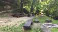 The spacious Felsentäli barbecue area includes a grill, a fire pit, and many tables and benches.
