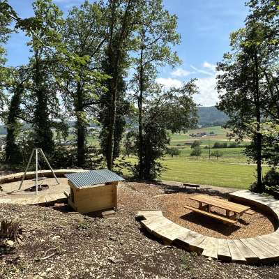 New, cozy fire pit with a beautiful view over the Chläggi.