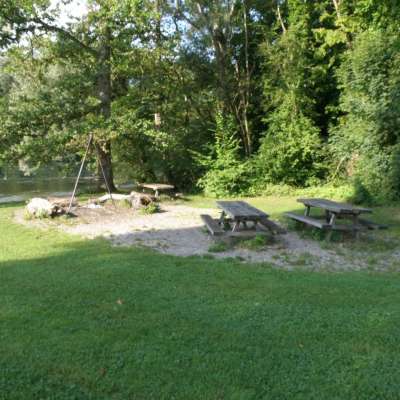This barbecue area is situated directly on the Rhine, making it ideal for a swimming excursion. The site itself is equipped with a fire pit and several tables and benches.