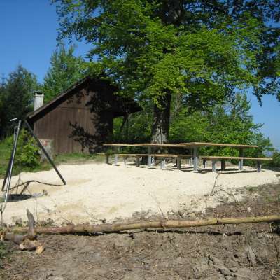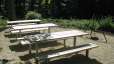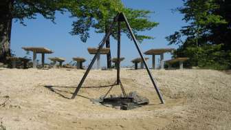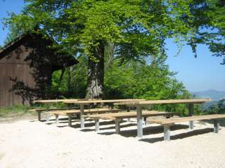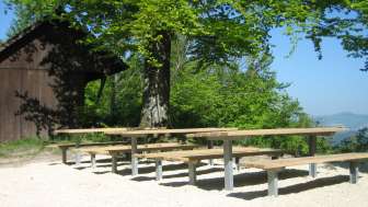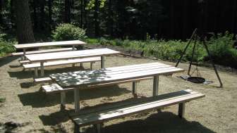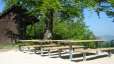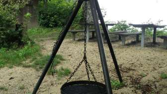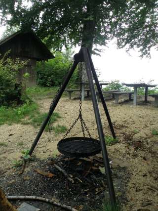 The spacious barbecue area has plenty of seating and a fire pit. You can also enjoy a fantastic view from the barbecue area.