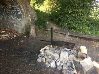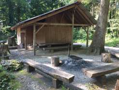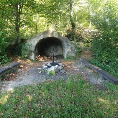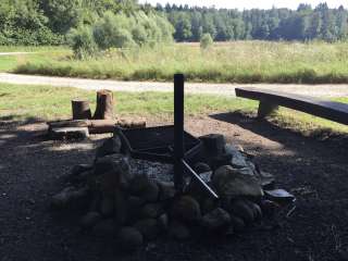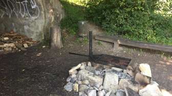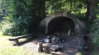 The Gwölb barbecue area is equipped with a fire pit and benches.