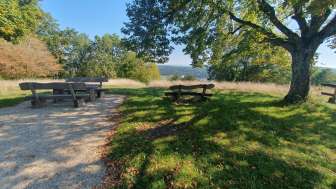 The Hohberg barbecue area has a fire pit and plenty of tables and benches. A beautiful view can also be enjoyed from the barbecue area.