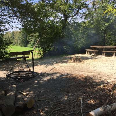 The Hölzli barbecue site is located on a small plateau on the edge of the Buchthalerwald forest. It has a fireplace with a barbecue and a table with benches.
