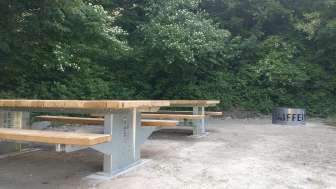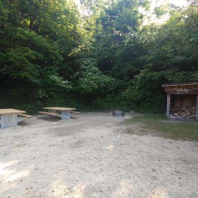 The Mogerenacker barbecue area includes a fire pit and various seating options.