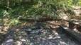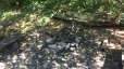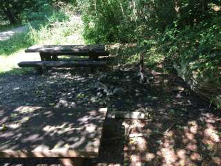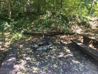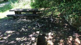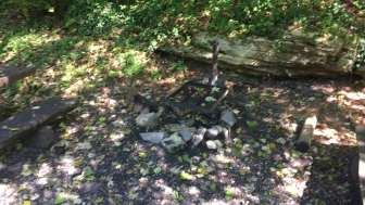 The Mogerenweiher barbecue area is equipped with a fire pit and several tables with benches.