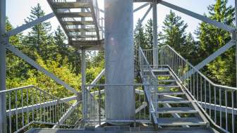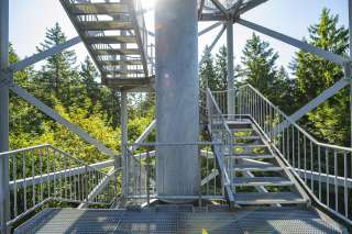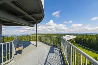 The observation deck is reached via 225 steps. Above the treetops, a unique panoramic view extends from the Black Forest to the Alps. A special feature of the Hagenturm is that it carries a radome of the Swiss Army at its summit. The plot of land, including the access path (2300 m2), belongs to the Swiss Confederation.