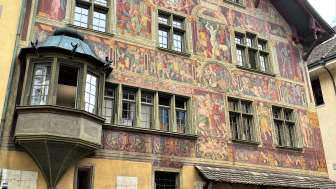 Das Haus zum Ritter ist eines von drei noch erhaltenen bemalten Häusern in der Stadt Schaffhausen.