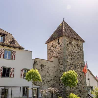 The magnificent town hall of Stein am Rhein impresses with its colorful facade paintings and impressive half-timbered details. Located in the heart of the old town, it bears witness to the rich history and culture of this picturesque town on the Rhine.