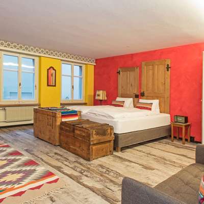 This traditional hotel dates back to 1654 and welcomes you to the old town of Schaffhausen. It is just a 5-minute walk from the train station. The HOTEL 2B also houses the US-MEX restaurant and a bar. All rooms were renovated in 2017. Each of the eight rooms has its own unique style. The rooms have one thing in common: they offer comfort and are the perfect retreat after a strenuous business day or an exciting city trip. The restaurant serves Mexican and American dishes such as fajitas and burgers. A winter garden in the quiet inner courtyard invites you to linger.