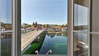 Enjoy regional dishes, French cuisine, and the beautiful landscape in a relaxed atmosphere, either on the terrace directly by the Rhine or within the historic premises. Located 40 minutes by car north of Winterthur.
