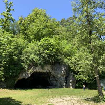 The Kesslerloch cave is one of the most important sites of the late Ice Age in Europe and has yielded traces of settlements from the Upper Palaeolithic (Magdalenian culture, 14,000-12,000 BC). The site was probably used by groups of hunters as a meeting place for seasonal hunting during the summer months. The cave covers an area of almost 200 m2 and is divided by a stone pillar.