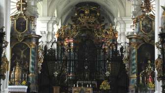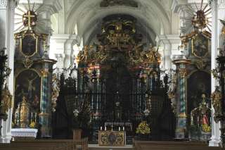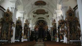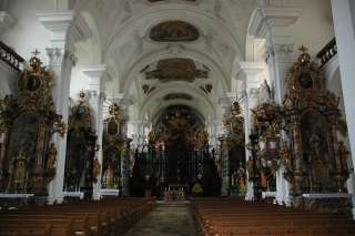 The main theme of the church is Mary. The ceiling frescoes, painted by Francesco Giorgoli from Ticino, are still preserved in their original freshness. The magnificent choir screen was erected by the Konstanz locksmiths Allweiler and Scheuermann.