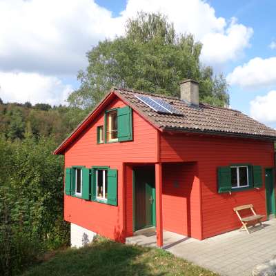 Die Klushütte liegt nahe am Wald auf einer Anhöhe bei Schaffhausen.