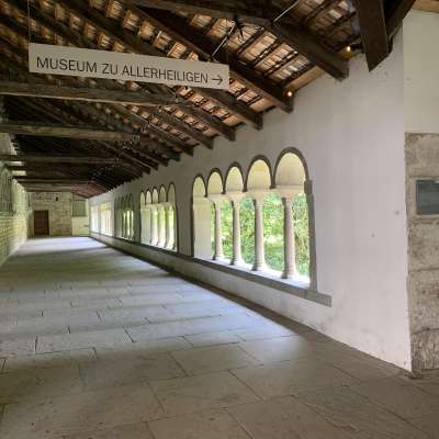 Der Kreuzgang zu Allerheiligen stammt aus dem 12. und 13. Jahrhundert und vereint romanische und gotische Bauelemente. Er umschliesst den idyllischen Kreuzganggarten, den sogenannten «Junkerfriedhof».