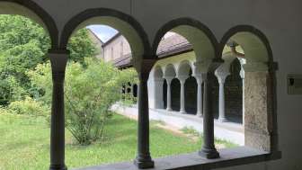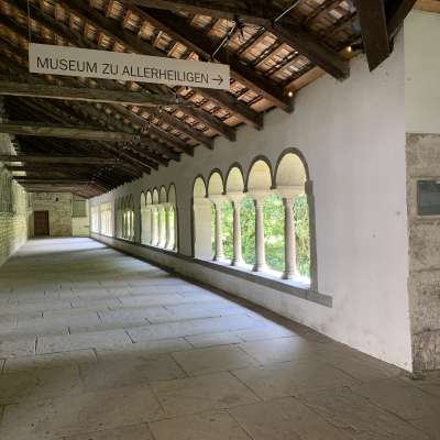 The largest cloister in Switzerland. Partly Romanesque 12th century, partly Gothic 13th century, it encloses the romantic, enchanting cloister garden, the so-called "Junkerfriedhof", where high Schaffhausen magistrates such as mayors, councillors, priests and other deserving citizens were buried from 1582 to 1874.