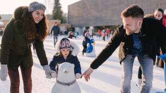 Visit the ice park in winter and enjoy ice skating, curling, curling or playing ice hockey. To quench your hunger or thirst, a visit to the KSS restaurant is definitely worthwhile.