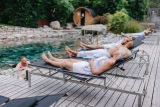 Relax in the wellness oasis in one of the various saunas or in the steam bath and enjoy the peace and quiet in the relaxation room or on the sunbathing terrace.