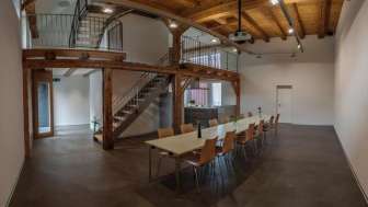 The barn, which is a listed building, is located in the old and romantic district of "Vorderbrugg," where sailors and fishermen used to live. The barn also houses the studio of Willi Hofmann, who has been dedicated to concrete art since 1987. - Culture (permanent exhibition by Willi Hofmann, Frauenfeld / Concrete Art), events - Venue also suitable for celebrations, aperitifs, conferences, workshops, meetings for up to 40 people - Catering/lunch by arrangement - various homemade culinary delicacies, a selection of cold and hot drinks, various wines.